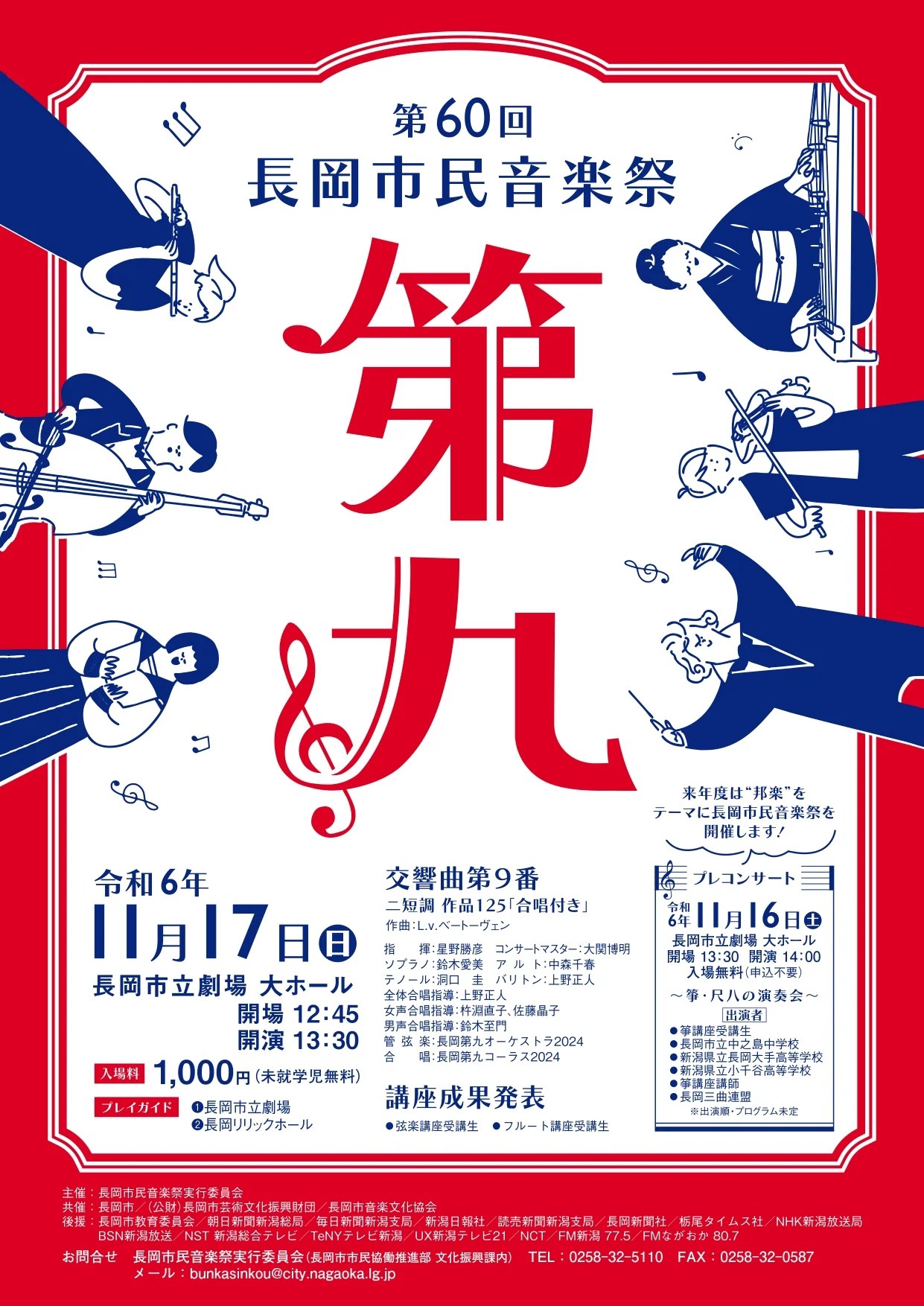 「第60回長岡市民音楽祭」に市民公募合唱団「長岡第九コーラス2024」の一員として出演します。よろしければ是非是非お運びを賜りたく、宣伝記事ですした。音楽祭は盛会のうちに終演いたしました。